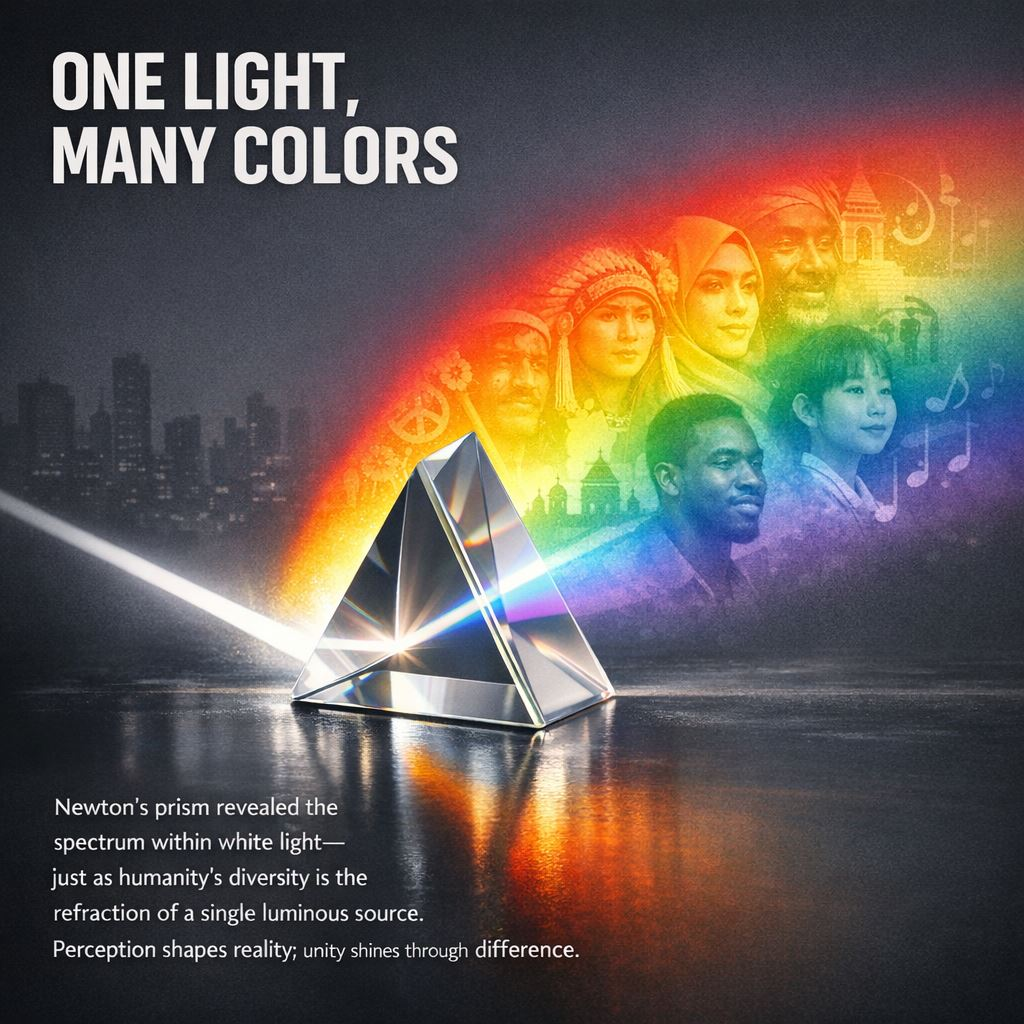 Newton’s prism revealed the secret of light. Now, as the world fractures and accelerates, humanity must do the same—refracting our shared light into understanding and harmony.