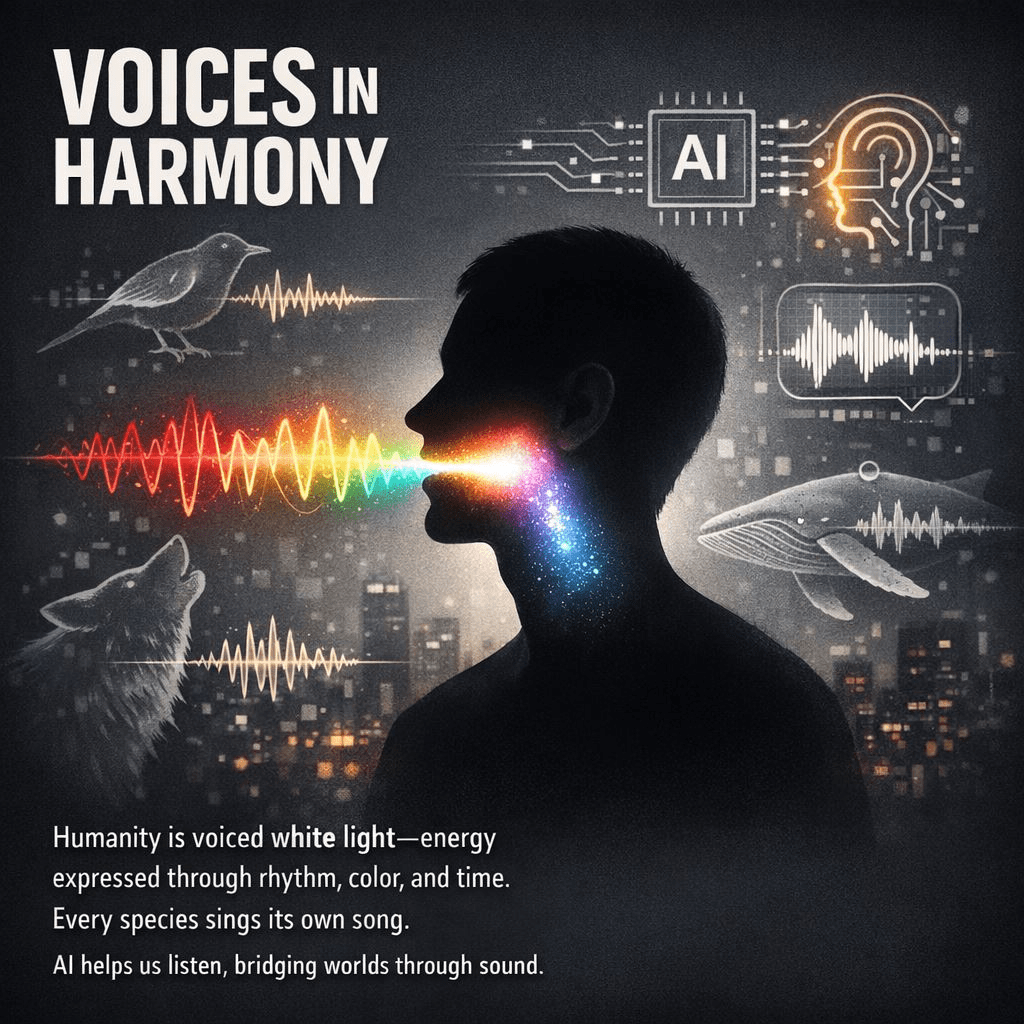 As AI shapes our communication, this insight is urgent. Machines that grasp only words miss tone, rhythm, and depth. If humanity is white light and sound energy, our survival depends on teaching technology to listen—not just to speak.