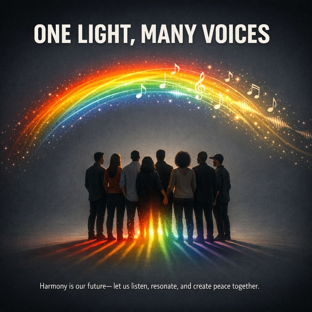 We are not merely souls trapped in bodies, nor animals who speak. We are voiced white light—energy expressing through breath, rhythm, color, and time. Language becomes music slowed down; culture, a tuning system; conflict, a moment where harmony falters.